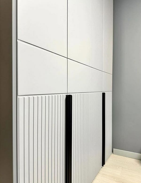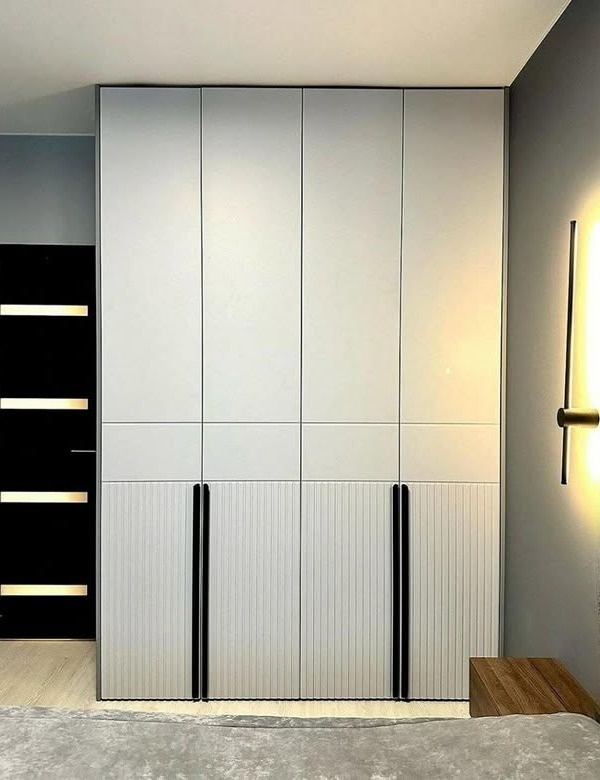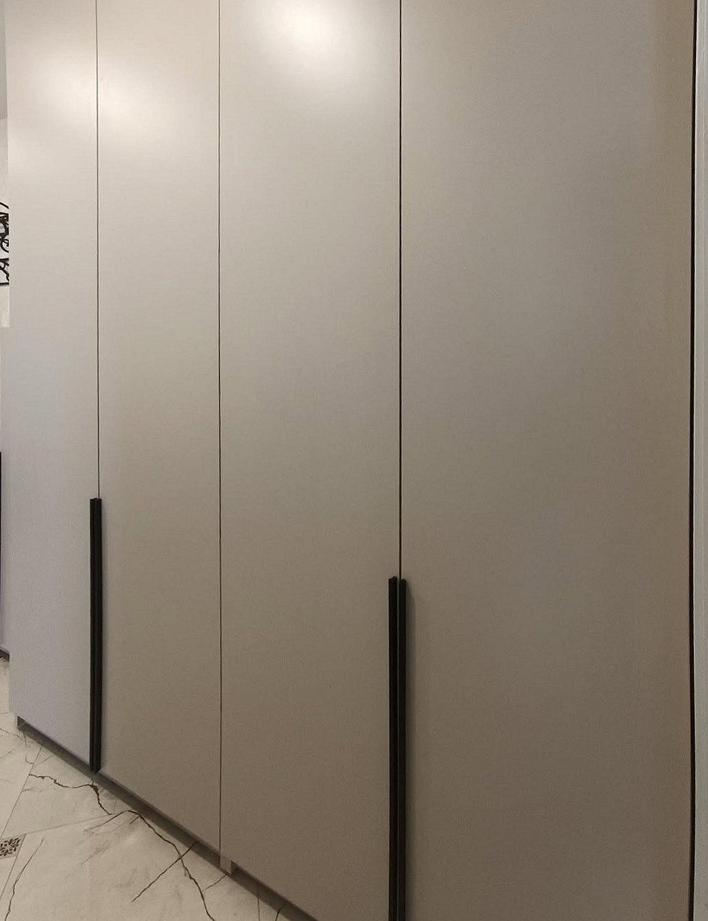 В результате у вас будет 3D-визуализация кухни с размерами и вариантами функционального наполнения. Вы познакомитесь с формой и цветом вертикальных ручек, с цветом и текстурой корпуса, а также с самим материалом дверей-купе.